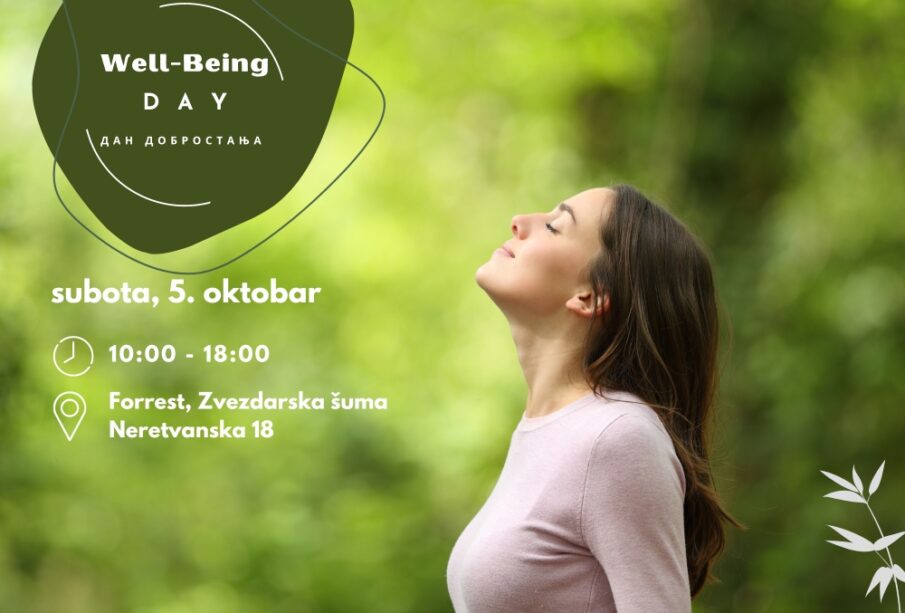 Dan Dobrostanja, koji će se održati u subotu 5. oktobra 2024. godine od 10-18h, u prelepom prostoru Forrest-Event&Trening centra u Zvezdarskoj šumi (Neretvanska 18, Beograd), ima za cilj da pruži priliku svim učesnicima da se još dublje povežu, edukuju i i motivišu kroz aktivnosti koje podstiču lični razvoj i brigu o sebi u svim aspektima života.